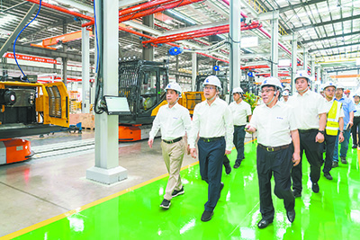 10月8日,自治區副主席、柳州市委書記譚丕創到北部生態新區、柳東新區,深入廣西柳工機械股份有限公司(以下簡稱股份公司)、柳州優必選智能科技有限公司、上汽通用五菱汽車股份有限公司調研,強調要深入貫徹落實習近平總書記關于廣西工作論述的重要要求,切實把思想和行動統一到黨中央關于經濟形勢的科學判斷和推動高質量發展的決策部署上來,搶抓政策紅利,賦能企業發展,全力沖刺四季度,盡最大努力爭取全年經濟發展最好結果,為全區經濟穩增長作出更大貢獻。