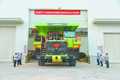 815日,柳工全球首創電傳動直驅礦用剛性自卸車DE100C(下稱柳工DE100C剛性自卸車)在東部研發制造基地成功下線。