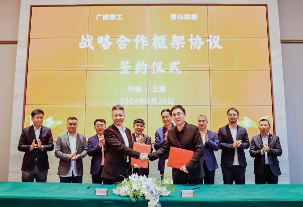 3月20日,廣西柳工機械股份有限公司與青山實業簽訂了戰略合作框架協議。廣西柳工機械股份有限公司黨委書記、董事長、首席執行官曾光安,副董事長、執行董事黃海波,高級副總裁羅國兵,青山實業董事局主席項光達,永青集團總裁伍華弟,永青科技集團董事長胡曉東、副總裁馮挺等出席簽約儀式。