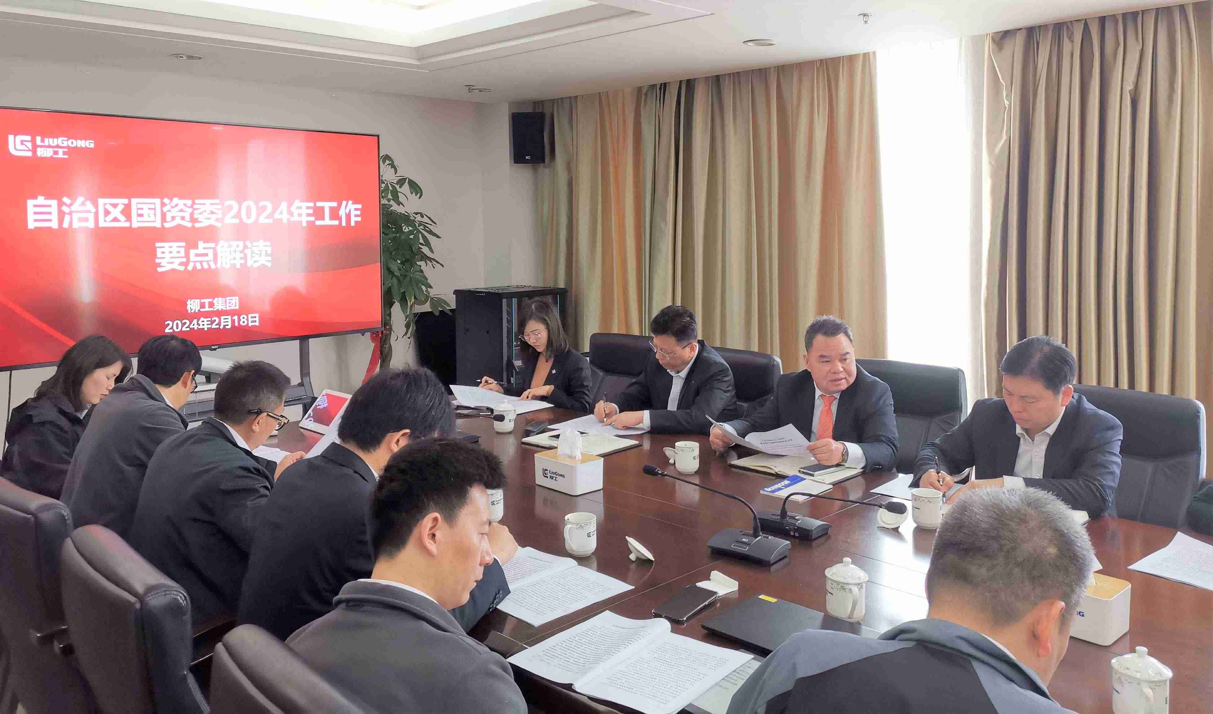 新年伊始,萬象更新。2月18日上午,春節(jié)收假后的第一個工作日,廣西柳工集團(tuán)有限公司召開自治區(qū)國資委2024年工作要點(diǎn)解讀專題會議,傳達(dá)學(xué)習(xí)相關(guān)文件精神,并深入研究貫徹落實(shí)舉措。廣西柳工集團(tuán)有限公司黨委書記、董事長鄭津主持會議,黨委副書記、副董事長、總經(jīng)理王太平,黨委副書記、紀(jì)委書記、工會主席賴頌平,董事會秘書、行政總監(jiān)左芳等領(lǐng)導(dǎo)班子成員出席會議,職能部門總監(jiān)以及子公司運(yùn)營相關(guān)負(fù)責(zé)人參加會議。