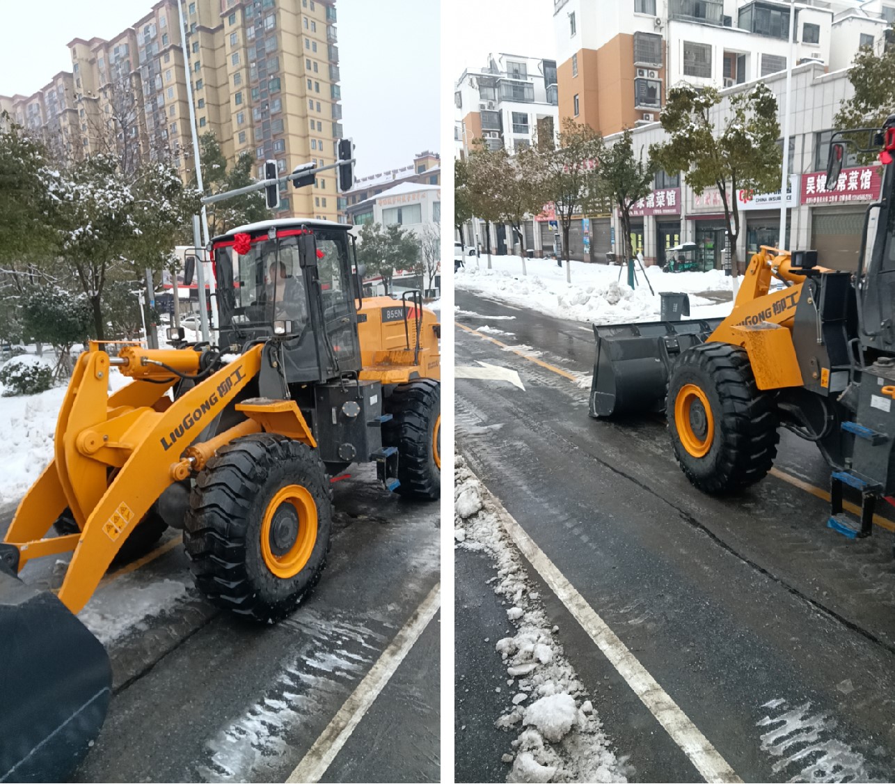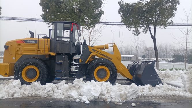 在荊州、襄陽地區(qū), 柳工856H、855N、833裝載機(jī)也積極參與到了清雪救援工作中,助力當(dāng)?shù)卣皶r(shí)清除道路積雪。值得一提的是,柳工荊州一客戶緊急采購了一臺(tái)柳工855N裝載機(jī)參與現(xiàn)場行動(dòng)。