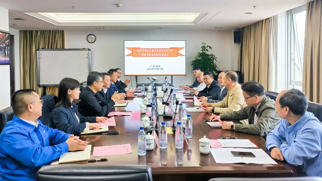 12月12日,自治區安委會第8考核巡查組組長、自治區國資委二級巡視員陳虎率考核巡查組到廣西柳工集團有限公司,開展2023年度自治區重點企業安全生產和消防工作考核,廣西柳工集團有限公司黨委書記、董事長鄭津出席現場考核會議。