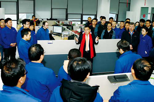 在全球研發(fā)中心,曾光安分別看望慰問(wèn)了研究總院、裝載機(jī)研究院、挖掘機(jī)研究院、傳動(dòng)件研究所等院所的工程技術(shù)人員,向大家致以新年的祝福問(wèn)候。他感謝過(guò)去一年公司全體研發(fā)技術(shù)人員為公司發(fā)展做出的不懈努力。他強(qiáng)調(diào),搞產(chǎn)品開(kāi)發(fā)一定要有創(chuàng)新力,要有自己的核心競(jìng)爭(zhēng)力技術(shù),要摒棄模仿別人產(chǎn)品的“跟班”做法。他希望2019年,裝載機(jī)研究院和挖掘機(jī)研究所在產(chǎn)品開(kāi)發(fā)領(lǐng)域取得新碩果。