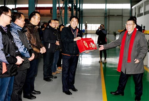 曾光安向農(nóng)機(jī)公司送上新春慰問(wèn)品