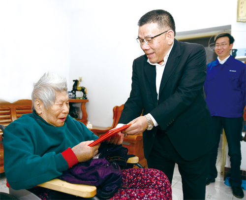 公司領導率隊 慰問建廠元老 發布時間:2018/12/17 點擊數: 次 【字體:小 大】 11月23日,公司黨委書記、董事長曾光安等高層領導攜公司80后領導干部開展慰問建廠元老活動,向建廠元老學習艱苦奮斗的精神,傳承老一輩柳工人的優秀品質。 曾光安為元老送上慰問紀念品