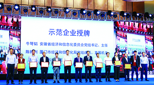 正是因?yàn)榱ね跈C(jī)人堅(jiān)韌不拔的信念和敢于挑戰(zhàn)的膽識(shí)氣魄,讓挖掘機(jī)公司在取得榮譽(yù)的里程碑上又添上濃墨重彩的一筆。10月12日,挖掘機(jī)公司在第二屆中國(guó)服務(wù)型制造大會(huì)上,獲得了由國(guó)家工業(yè)和信息化部授予的“服務(wù)型制造示范企業(yè)”榮譽(yù)稱號(hào),成為廣西今年唯一一家獲此殊榮的企業(yè)。