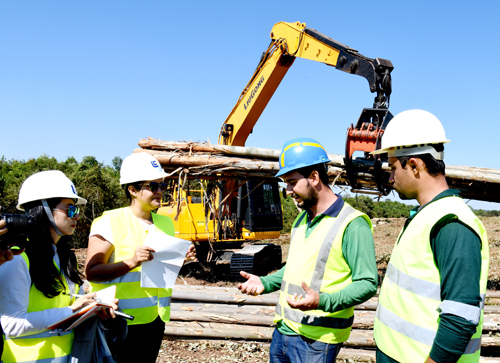 8月18日一早,我們在柳工巴西工廠制造總監黨建元和柳工拉美公司市場專員Camila的陪同下,深入莫吉瓜蘇和卡薩布蘭卡的林場,探訪我們的設備作業情況。在此之前我們一直很期待,畢竟這樣的工況在國內并不常見。