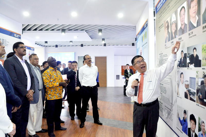 曾光安用流利的英語向來訪貴賓表示熱烈的歡迎,并對柳工發展大事記、柳工技術研發平臺建設及柳工一帶一路的海外業務布局等方面做了精彩分享。曾光安說,希望未來能與來訪的大使所在國家有更多的合作。來訪的貴賓全程全神貫注,認真聆聽,無不對柳工的快速發展步伐表示贊嘆。