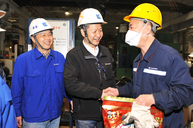 開工儀式結(jié)束后,黃海波來到生產(chǎn)車間,對一線的班組人員進(jìn)行慰問,詢問員工春節(jié)期間的生活情況,并囑咐員工們在高產(chǎn)攻堅戰(zhàn)中,要保重身體并送上慰問品,給員工們帶來了滿滿的祝福。員工們的臉上洋溢著陽光般的笑容,嘴角掛著幸福的微笑。