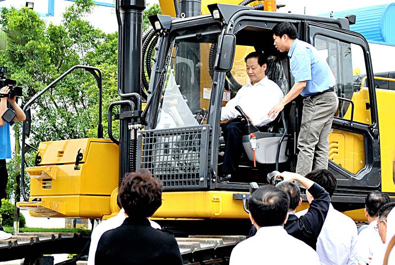 廣西區黨委書記彭清華體驗公司LCG970大型挖掘機