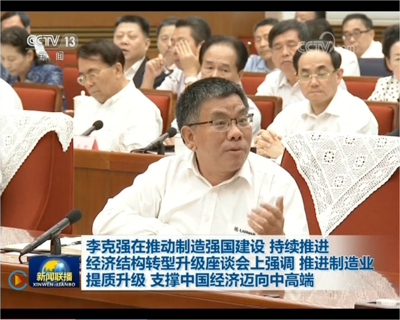 公司黨委書記、董事長曾光安應邀參加座談會,并作為三個發言企業的代表之一,首先在會上發言(如下圖)。曾光安圍繞提升制造業競爭力等相關問題,向李克強做匯報。原計劃八分鐘的發言,李克強興致勃勃地與曾光安交流互動近三十分鐘。曾光安簡要介紹了工程機械行業和柳工的發展情況,具體針對中國制造業轉型升級提出了五點建議,分別是:提高中國制造業的國際競爭力;支持制造業的技術創新和智能制造;加強行業協會的管理,規范行業競爭秩序;培養一支可持續發展的制造業人才隊伍,包括具有國際經營能力的企業家隊伍,世界級的研發隊伍和工匠隊伍;適度降低制造業的經營成本,包括稅收、物流和融資成本。